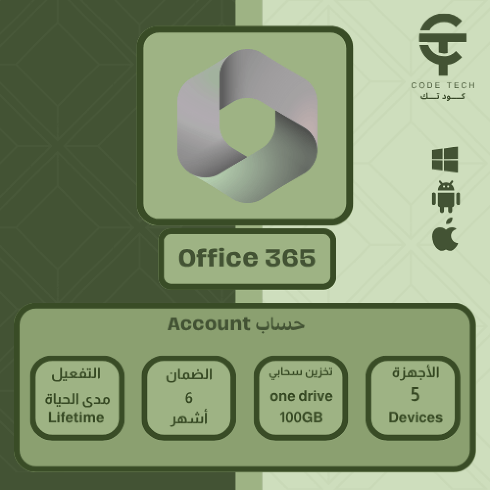 يتم أرسال حساب جاهز مفعل عليه اوفيس 365 مدى الحياه