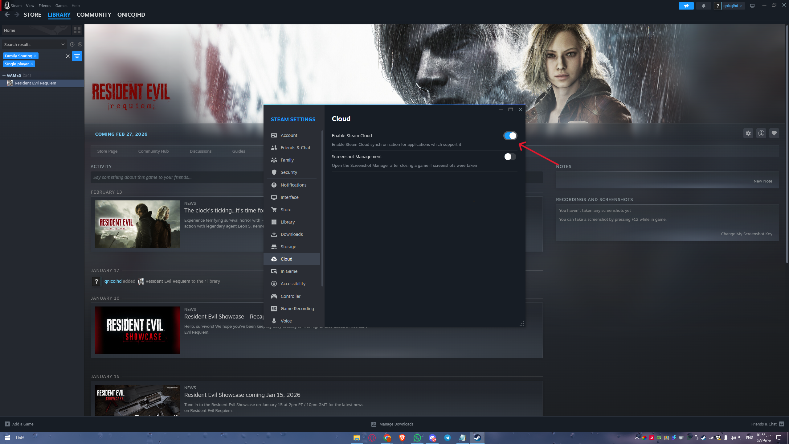 - 3: قم بإغلاق خيار Enable Steam Cloud