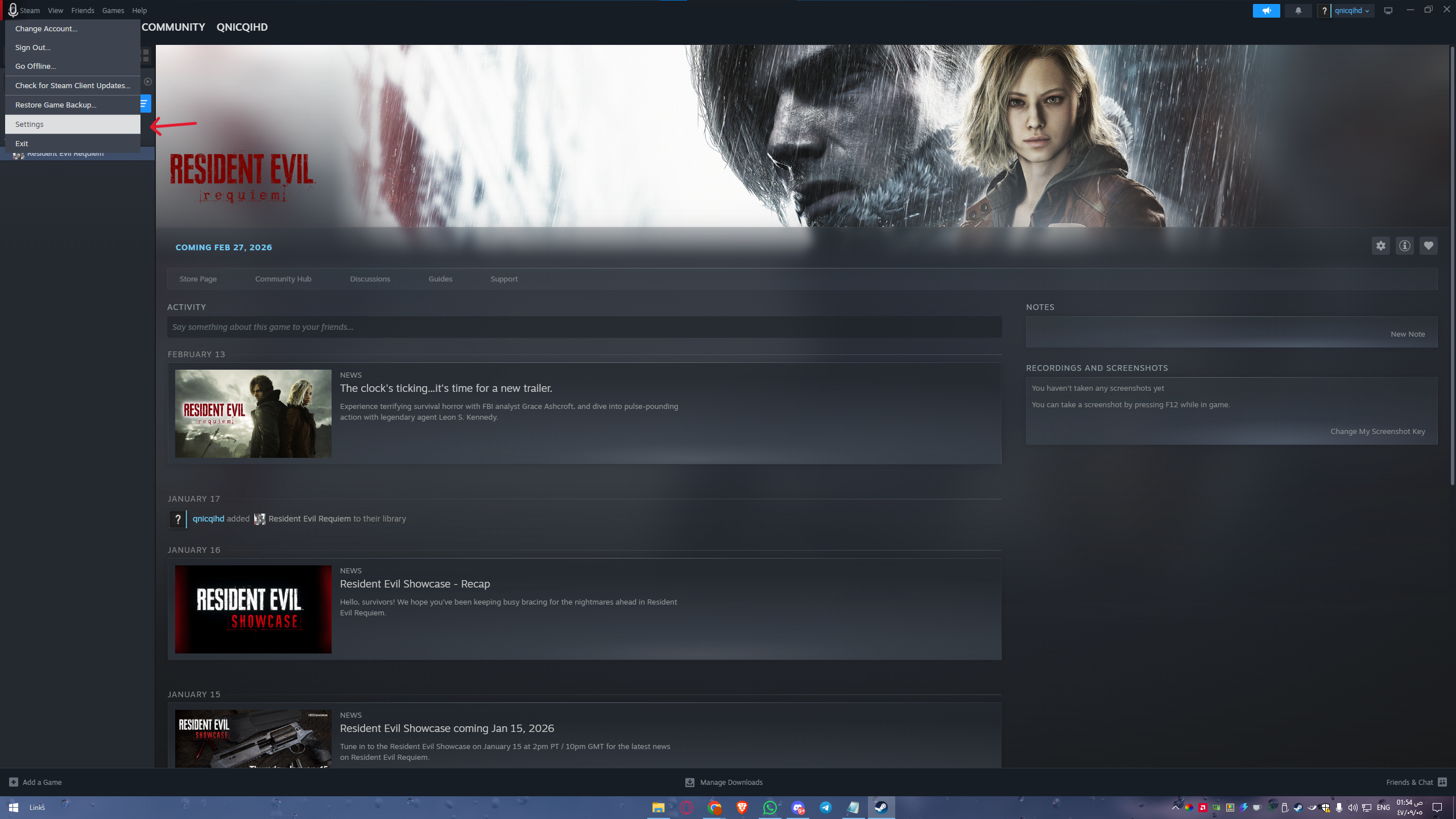 - 1: من أعلى يسار البرنامج، اضغط على كلمة Steam ثم اختر Settings (الإعدادات).