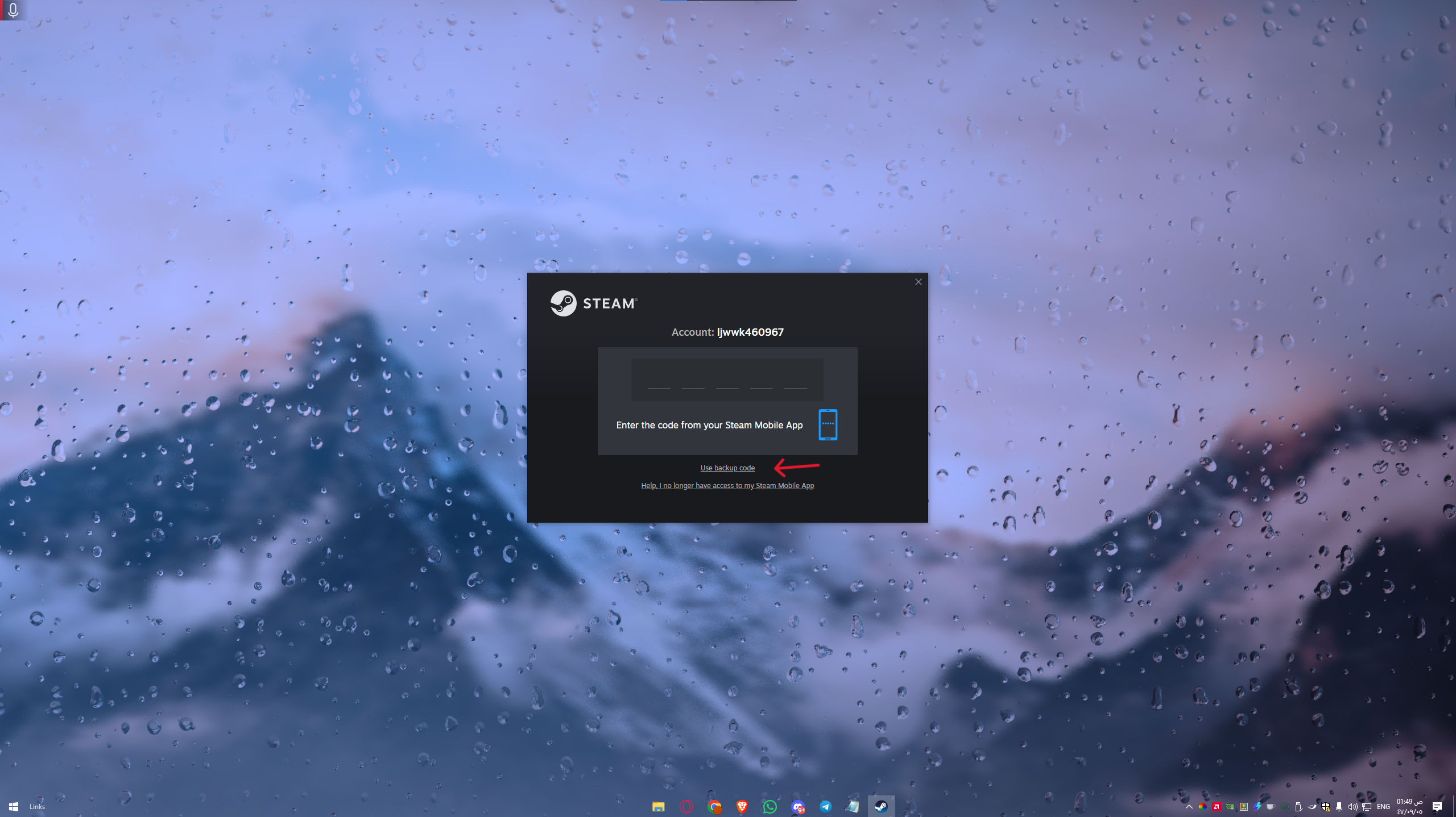 : في النافذة التالية، اضغط على "Use backup code" لإدخال كود الاحتياط الذي زودك به البائع (أو كود التحقق).